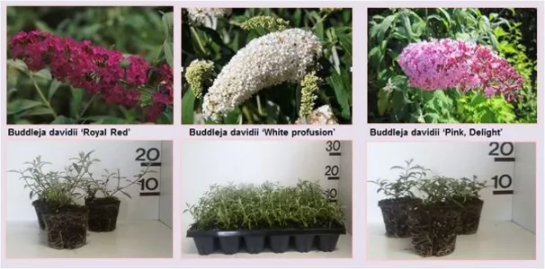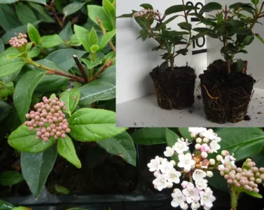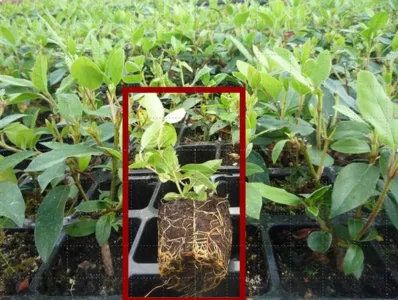has a very broad product range ornamental young plant shrubs in tree tray.